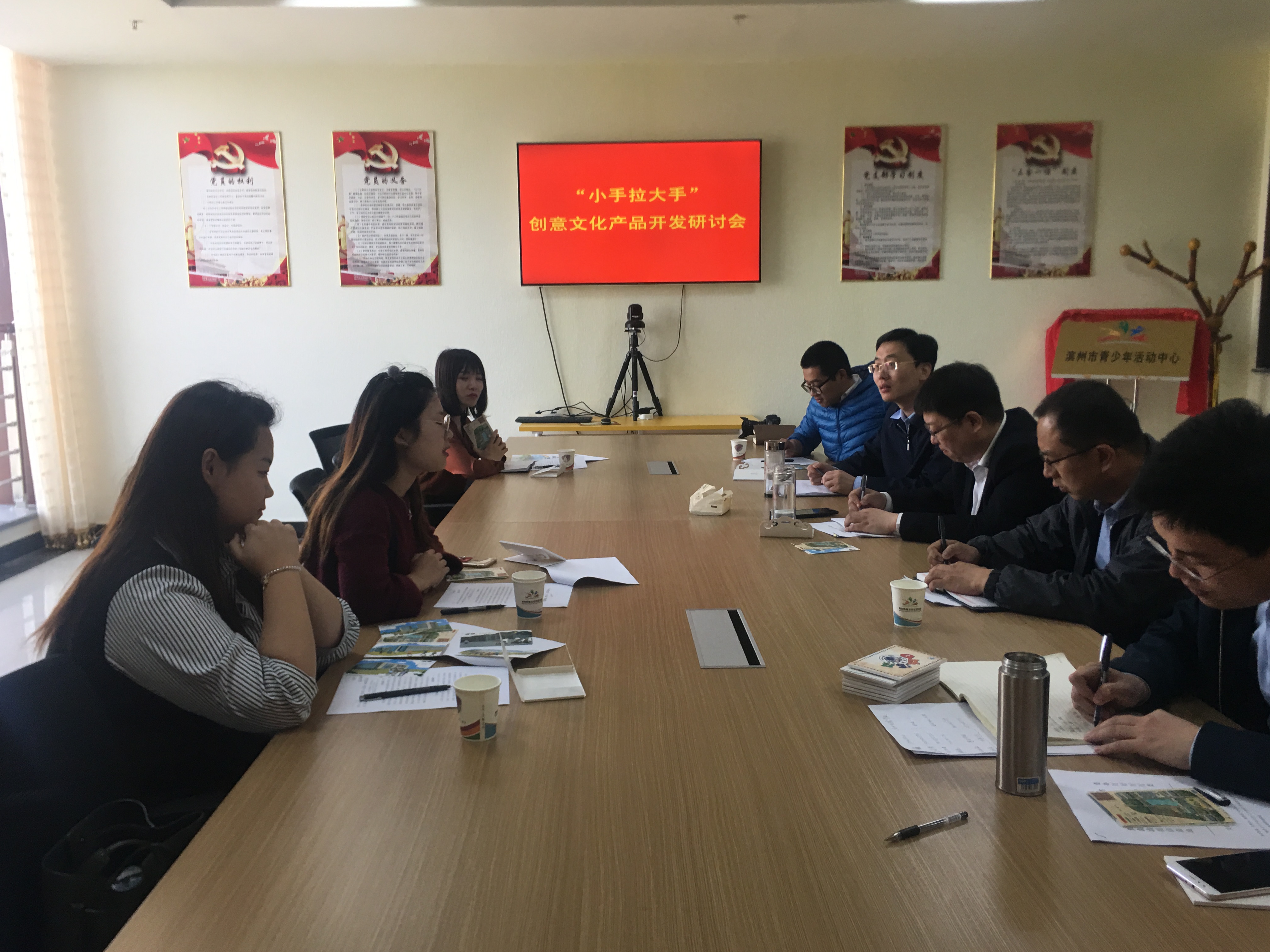 为贯彻落实《“小手拉大手 三十行动”的实施意见》,4月18日上午,团市委在市青少年活动中心组织召开“小手拉大手”创意文化产品开发研讨会,来自滨城区、开发区、滨州实验学校的7位辅导员老师参加会议。