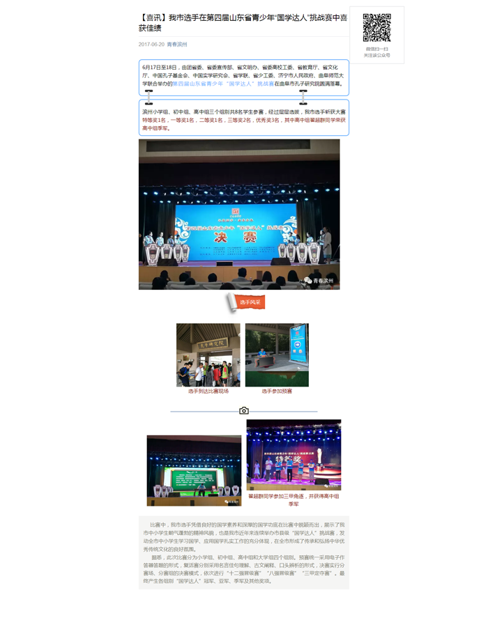 【喜讯】我市选手在第四届山东省青少年“国学达人”挑战赛中喜获佳绩