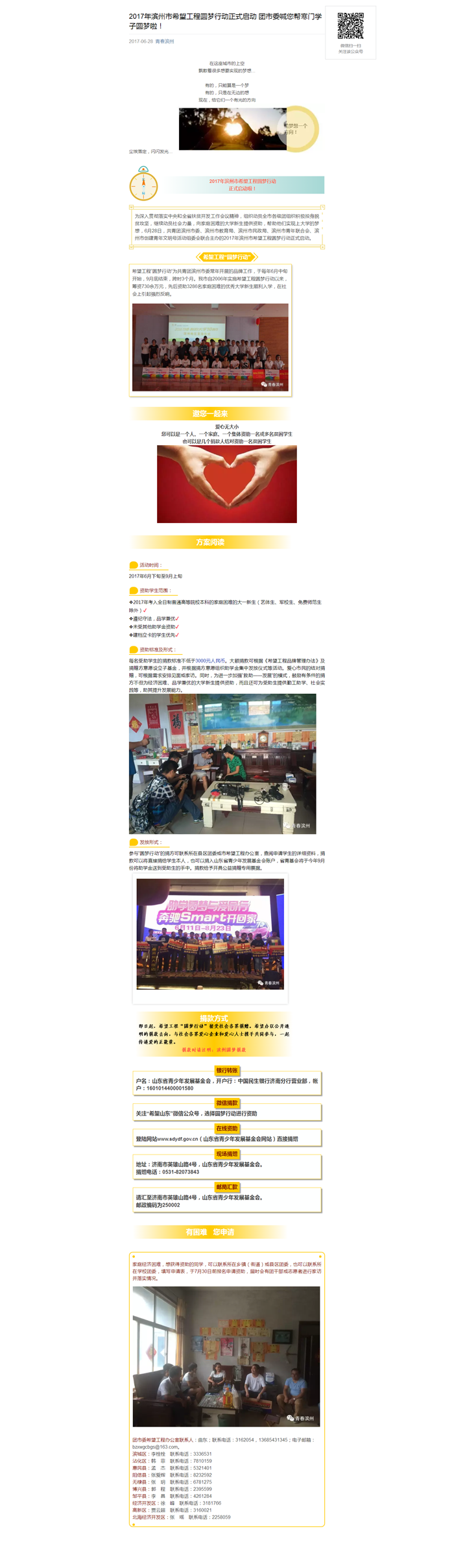 2017年滨州市希望工程圆梦行动正式启动 团市委喊您帮寒门学子圆梦啦!