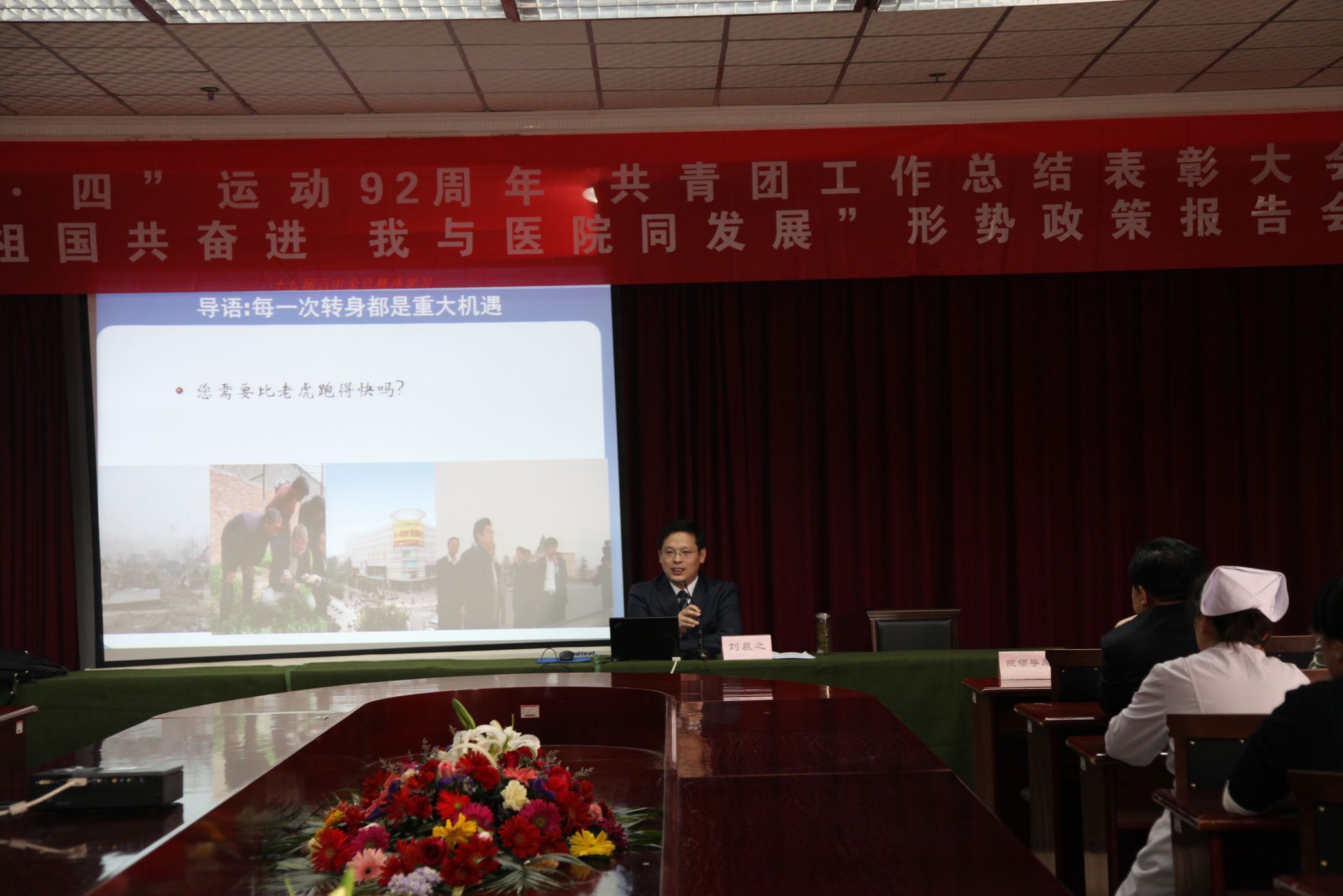 | 市人民医院团委举办纪念五四运动92周年共青团工作总结表彰大会暨“我与祖国共奋进 我与医院同发展”形式政策报告会