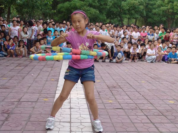 呼啦圈、跳皮筋、跳绳、踢毽子、抖空竹等表演精彩纷呈,赢得了在场观众欢呼喝彩,得到了领导师生的一致好评。